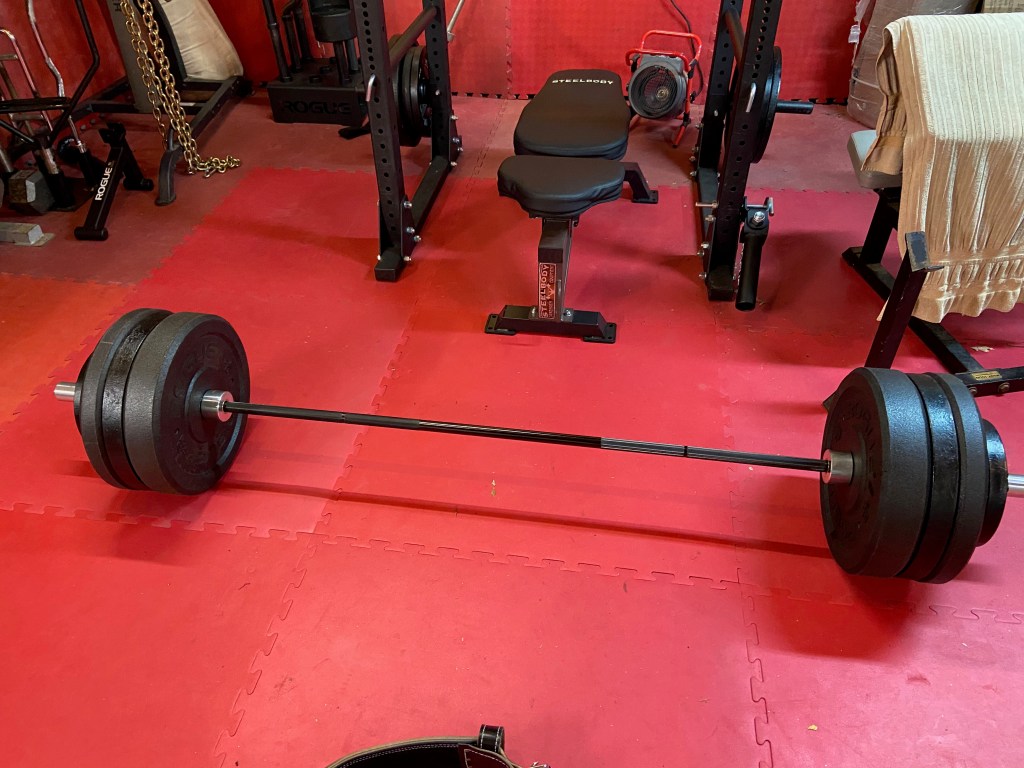 Strength training is very slow process and shifts in goals have consequences. I don’t know where my deadlift and squat would be right now if I had stayed with them as I hit upper body a bit harder to gain strength and mass. When I started lifting in buddy’s garage in April-May 2020, deadlifts came back into the regular rotation after I decided barbell rows weren’t working for me. My experience of having lifted only in a commercial gym made me have to think how I could attack lower back training. A barbell can work every muscle group in the body but it does compound movements best. The deadlifts started around 185 pounds and topped out around 245. I didn’t fit in my lifting belt anymore so I was limited in what I felt comfortable lifting without it so the loaded weight stayed down. I ordered a 13 mm lifting belt from Rogue Fitness and it came around July. That allowed me to really start training legs and back much harder. My squat was improving at a higher rate than my deadlift. It is important to note that I was doing more hypertrophy training than strength training during the summer and early fall in 2020. That shifted a bit after my belt arrived. I knew from my lifts of 245 that there was much more in the tank, but I just wanted to be safe about it.